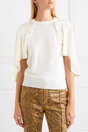 Jane Sloan (played by Katie Stevens) on The Bold Type on Freeform was spotted wearing this white cape top and studded mini skirt on The Bold Type on episode 'Betsy' (2x07) in Jul 2018. Jane's Top is the Cape-effect jersey and wool top by Chloe . Jane's Skirt is the Skirt with Embroidered Bees by Maje.