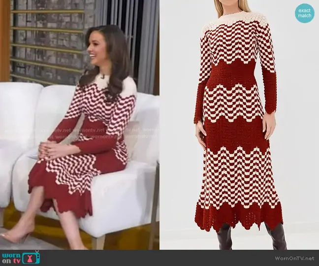 Cecilia Vega on Good Morning America on ABC was spotted wearing this yellow lace shirtdress on Good Morning America on Nov 04 2022's episode. Cecilia's Dress is the Belted Floral-Lace Illusion Shirtdress by Nanette Nanette Lepore.