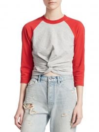 Jennifer Pierce (played by China Anne McClain) on Black Lightning on The CW was spotted wearing this twist front raglan tee on Black Lightning on episode 'The Book of Blood: Chapter One' (2x05) in Nov 2018. Jennifer's Top is the Twist-Hem Baseball T-Shirt by T by Alexander Wang.