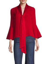 Claire Dunphy (played by Julie Bowen) on Modern Family on ABC was spotted wearing this red tie neck blouse on Modern Family on episode 'Stuck in a Moment' (10x10) in Dec 2018. Claire's Top is the Meredith Blouse by Alice + Olivia.