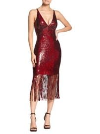 Sally Spectra (played by Courtney Hope) on The Bold and the Beautiful on CBS was spotted wearing this red fringed sequin dress on The Bold and the Beautiful on Dec 26 2018's episode. Sally's Dress is the Frankie Dress by Dress the Population.