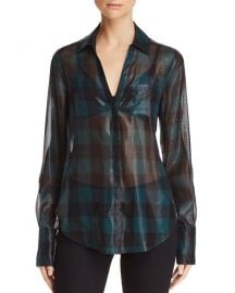 Anna Devane (played by Finola Hughes) on General Hospital on ABC was spotted wearing this green metallic blouse on General Hospital on Dec 31 2018's episode. Anna's Top is the Bevyn Plaid Top by Paige.