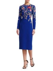 Maggie Horton (played by Suzanne Rogers) on Days of our Lives on Peacock was spotted wearing this blue floral embroidered dress on Days of our Lives on Jan 09 2019's episode. Maggie's Dress is the Embroidered Midi Sheath Dress by Ahluwalia.