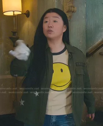 Nick (played by Siena Agudong) on No Good Nick on Netflix was spotted wearing this star print army jacket on No Good Nick on episode 'The Charity Mugger' (1x07) in May 2019. Nick's Jacket is the Kato Military Shirt by Rails.