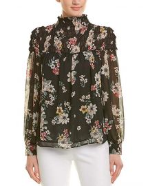 Top: Floral Story Smocked Mock Neck Blouse by Vince Camuto