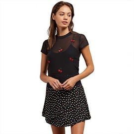 Cheryl Blossom (played by Madelaine Petsch) on Riverdale on The CW was spotted wearing this cherry embroidered mesh top and red heart skirt on Riverdale on episode 'Prom Night' (3x20) in May 2019. Cheryl's Top is the Cher Top by Volcom . Cheryl's Skirt is the Love Heart Embroidered Mini Skirt by Christopher Kane.