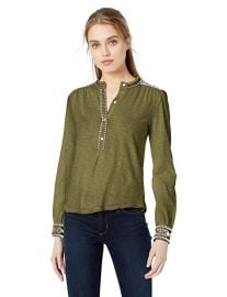 Alex Dunphy (played by Ariel Winter) on Modern Family on ABC was spotted wearing this green embroidered top on Modern Family on episode 'Commencement' (10x21) in May 2019. Alex's Top is the Embroidered Henley Top by Lucky Brand.