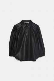 Faux Leather Shirt by Zara worn by Melanie Bromley on E! News