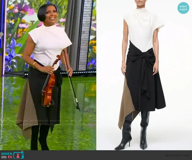 on Tamron Hall Show on ABC was spotted wearing this pink leather shirt and pants on Tamron Hall Show on Jan 15 2020's episode. 's Top is the Eddy faux leather shirt by Nanushka . 's Pants is the Chimo belted vegan leather wide-leg pants by Nanushka.