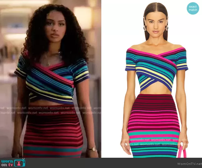 Zoey Johnson (played by Yara Shahidi) on Grown-ish on Freeform was spotted wearing this blue pinstripe tie blazer and pants on Grown-ish on episode 'Crunch Time' (3x01) in Jan 2020. Zoey's Blazer is the Just Getting Started Blazer by Maggie Marilyn . Zoey's Pants is the Go Getter pinstriped woven straight-leg pants by Maggie Marilyn.