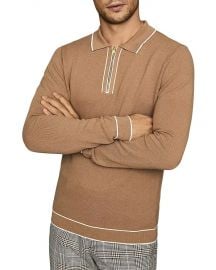 Lanark Long-Sleeve Pique Polo Shirt by Reiss worn by Justin Sylvester on E! News