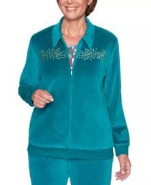 Jacket: Bright Idea Embellished Velour Jacket in Jade / Berry by Alfred Dunner