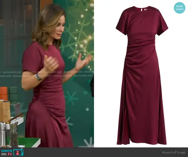 Janai Norman on Good Morning America on ABC was spotted wearing this navy swirl trim dress on Good Morning America on Sep 02 2020's episode. Janai's Dress is the Flourish Swirl Trim Dress by Trina Turk.