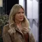 Kristen DiMera (played by Stacy Haiduk) on Days of our Lives on Peacock was spotted wearing this brown snake print jacket on Days of our Lives on Oct 27 2021's episode. Kristen's Jacket is the Fenix Snake Embossed Faux Leather Moto Jacket by Free People.