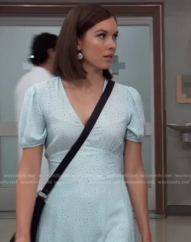Willow Tait (played by Katelyn MacMullen) on General Hospital on ABC was spotted wearing this light blue floral dress on General Hospital on Sep 25 2020's episode. Willow's Dress is the Floral Deep-V Minidress by BP..