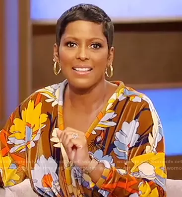 Tamron Hall on Tamron Hall Show on ABC was spotted wearing this brown floral maxi dress on Tamron Hall Show on Sep 24 2020's episode. Tamron's Dress is the Multicolor chenille dress by Fendi.