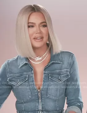 Kourtney Kardashian on Keeping Up with the Kardashians on E! was spotted wearing this denim zip jumpsuit on Keeping Up with the Kardashians on episode 'Paris, Puppies and Pranks' (19x02) in Sep 2020. Kourtney's Jumpsuit is the The Fit For Success Jumpsuit by Good American.