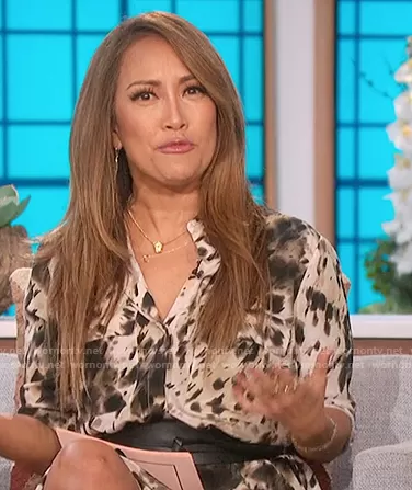 Carrie Inaba on The Talk on CBS was spotted wearing this printed shirtdress on The Talk on Sep 25 2020's episode. Carrie's Dress is the Cameron Silk Printed Long-Sleeve Shirtdress by L'Agence.