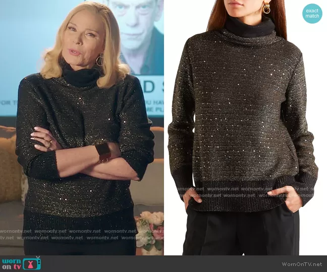 Ginger Sweet (played by Melia Kreiling) on Filthy Rich on Fox was spotted wearing this black studded blazer and bow neck blouse on Filthy Rich on episode 'Pilot' (1x01) in Oct 2020. Ginger's Jacket is the Allegria Blazer by Elie Tahari . Ginger's Top is the Bow Blouse by Sipaiya.