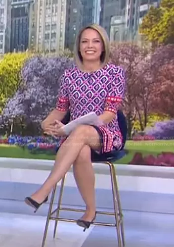 Dylan Dreyer on Today on NBC was spotted wearing this pink mixed print dress on Today on Jun 07 2021's episode. Dylan's Dress is the Print Jersey Shift Dress by Eliza J.