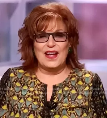 Joy Behar on The View on ABC was spotted wearing this printed lace trim blouse on The View on Oct 05 2020's episode. Joy's Top is the Freddie Silk Blouse by Kobi Halperin.