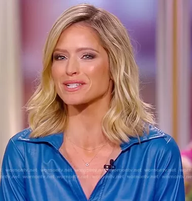 Sara Haines on The View on ABC was spotted wearing this blue leather dress on The View on Oct 05 2020's episode. Sara's Dress is the Saddie Dress by Ramy Brook.