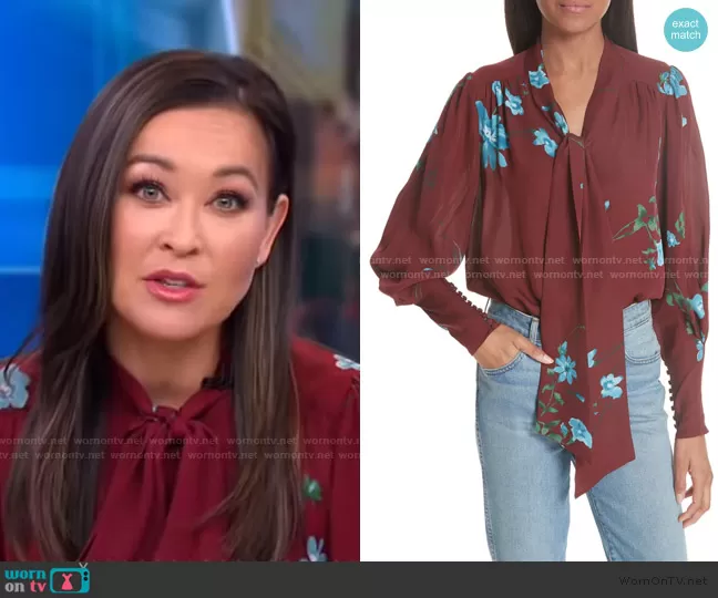Angeletta Floral Tie-Neck Silk Blouse by Joie worn by Eva Pilgrim on Good Morning America