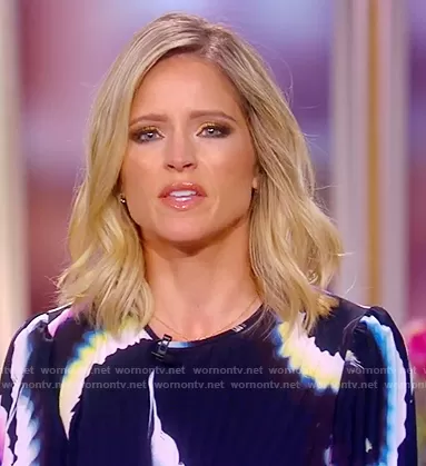 Sara Haines on The View on ABC was spotted wearing this black tie dye print dress on The View on Oct 06 2020's episode. Sara's Dress is the Leah Maxi Dress by A.L.C..