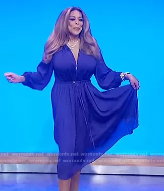 Wendy Williams on The Wendy Williams Show on Various was spotted wearing this purple tie waist dress on The Wendy Williams Show on Oct 06 2020's episode. Wendy's Dress is the Drawstring Maxi Dress by Tibi.