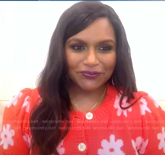 on Good Morning America on ABC was spotted wearing this red floral cardigan on Good Morning America on Oct 06 2020's episode. 's Sweater is the Marker Floral Cardigan by Kate Spade.