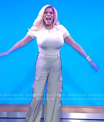 Wendy Williams on The Wendy Williams Show on Various was spotted wearing this green cargo pants on The Wendy Williams Show on Oct 09 2020's episode. Wendy's Pants is the Lux Twill Wide-Leg Cargo Pants by Jonathan Simkhai.