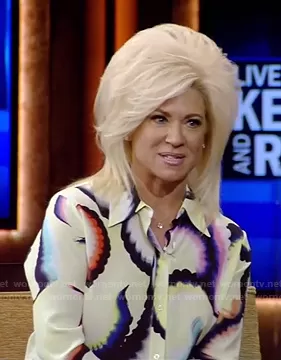 Jayne High/Low Stretch Silk Shirt by A.L.C. worn by Theresa Caputo on Live with Kelly and Ryan