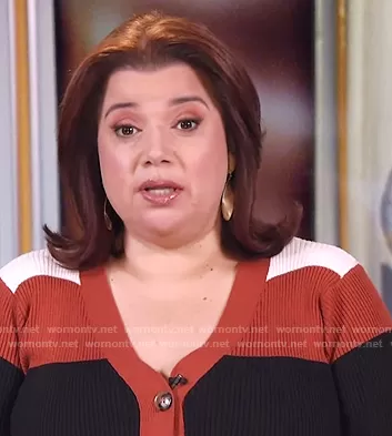 Ana Navarro on The View on ABC was spotted wearing this stripe button front dress on The View on Oct 12 2020's episode. Ana's Dress is the Stripe Cardigan Long Sleeve Sweater Dress Eloquii.