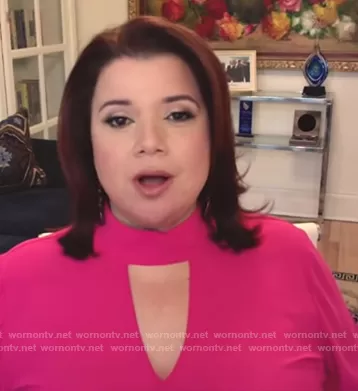 Ana Navarro on The View on ABC was spotted wearing this pink halter neck top on The View on Oct 15 2020's episode. Ana's Top is the Dramatic Sleeve Blouse with Cutout by Eloquii.