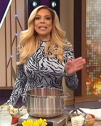 Wendy Williams on The Wendy Williams Show on Various was spotted wearing this zebra stripe dress on The Wendy Williams Show on Oct 15 2020's episode. Wendy's Dress is the Zebra Jacquard Long Sleeve Dress by Proenza Schouler.