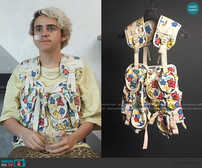 Fraser Wilson (played by Jack Dylan Grazer) on We Are Who We Are on HBO was spotted wearing this floral utility vest on We Are Who We Are on episode 'Right Here Right Now #2' (1x02) in Sep 2020. Fraser's Vest is the Military Vest by Bernhard Willhelm.