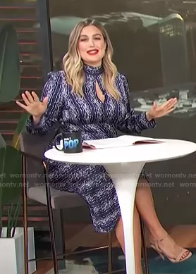 Carissa Loethen Culiner on E! News on E! was spotted wearing this blue printed keyhole dress on E! News Daily Pop on Oct 19 2020's episode. Carissa's Dress is the Angie Long Printed Dress by Sandro.