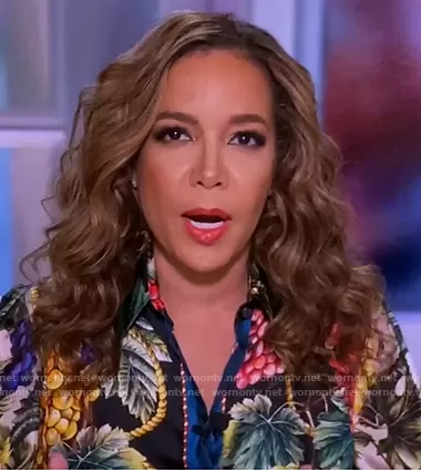 Sunny Hostin on The View on ABC was spotted wearing this grape print blouse on The View on Oct 21 2020's episode. Sunny's Top is the Print Silk Shirt by Dolce & Gabbana.