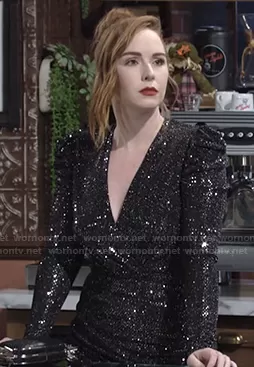 Mariah Copeland (played by Camryn Grimes) on The Young and the Restless on CBS was spotted wearing this black sequin wrap dress on The Young and the Restless on Oct 21 2020's episode. Mariah's Dress is the Loulou Dress by IRO.
