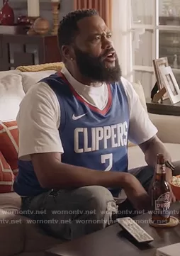 Andre Johnson (played by Anthony Anderson) on Black-ish on ABC was spotted wearing this LA Clippers jersey on Black-ish on episode 'Hero Pizza' (7x03) in Oct 2020. Andre's Top is the Kawhi Leonard Clippers Icon Edition Jersey by Nike.