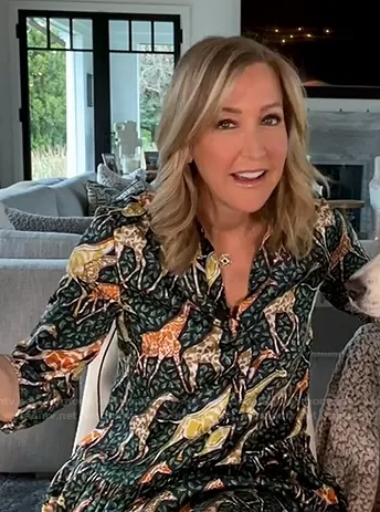 Lara Spencer on Good Morning America on ABC was spotted wearing this green giraffe print shirtdress on Good Morning America on Apr 12 2021's episode. Lara's Dress is the Shirtdress in Giraffes by J. Crew.