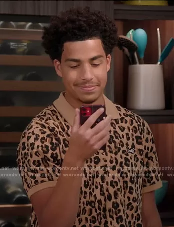 Andre Johnson Jr (played by Marcus Scribner) on Black-ish on ABC was spotted wearing this leopard print polo shirt on Black-ish on episode 'Dre At Home Order' (7x04) in Oct 2020. Junior's Shirt is the Leopard Summer Polo by Ovadia .
