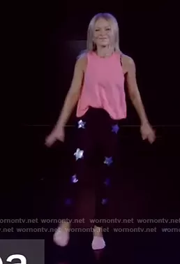 Kelly Ripa on Live with Kelly and Mark on Disney ABC Home Entertainment was spotted wearing this black metallic star leggings on Live with Kelly and Ryan on Oct 30 2020's episode. Kelly's Leggings is the Sprinter High Knockout Legging by Ultracor.