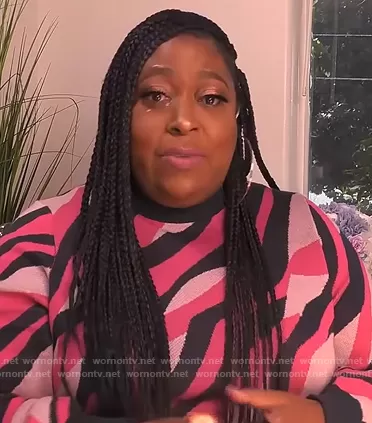 Loni Love on The Real on BETher was spotted wearing this camo sweater dress on The Real on Nov 02 2020's episode. Loni's Dress is the Intarsia Sweater Dress by Eloquii.