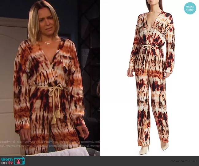 Nicole Walker (played by Arianne Zucker) on Days of our Lives on Peacock was spotted wearing this tie dye jumpsuit on Days of our Lives on Nov 05 2020's episode. Nicole's Jumpsuit is the Jax Tie-Dye Jumpsuit by Nanushka.