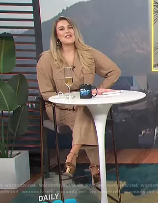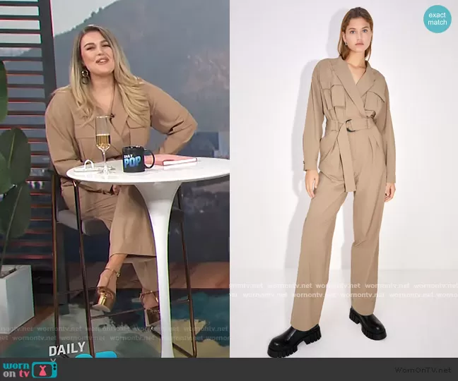 Carissa Loethen Culiner on E! News on E! was spotted wearing this beige cargo jumpsuit on E! News Daily Pop on Nov 06 2020's episode. Carissa's Jumpsuit is the Long Jumpsuit with Pockets by Zara.