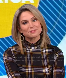 Knit Plaid Turtleneck by Fore worn by Amy Robach on Good Morning America