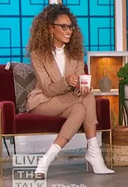 Elaine Welteroth on The Talk on CBS was spotted wearing this check blazer and pants on The Talk on Nov 16 2020's episode. Elaine's Blazer is the Chamberlain Blazer by L'agence . Elaine's Pants is the Ludivine Houndstooth Crop Trousers by L'agence.