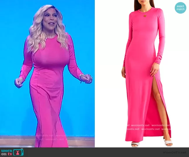 Wendy Williams on The Wendy Williams Show on Various was spotted wearing this pink bodycon dress with slit on The Wendy Williams Show on Nov 17 2020's episode. Wendy's Dress is the Long Dress by Elizabeth and James.