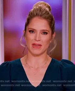 Sara Haines on The View on ABC was spotted wearing this teal puff shoulder sweater on The View on Nov 18 2020's episode. Sara's Sweater is the Rory Puff-Sleeve Sweater by Ramy Brook.